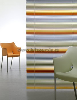 INTERIÉROVÁ ŽALUZIE VI 25 mm je základní typ horizontálního stínění. Naklápění lamel zajišťuje průhledná tyčka, vytahování a spouštění žaluzie je přes šňůru s brzdou. Hliníkovou lamelu v šíři 25 mm nabízíme v tloušťce 0,18 mm v 25-ti barvných odstínech, a 0,21 mm v 43-ti barevných odstínech. Všechny ostatní komponenty jen v bílém provedení. Žaluzie je možné doplnit postraním vypínáním – ocelovou strunou potaženou PVC.